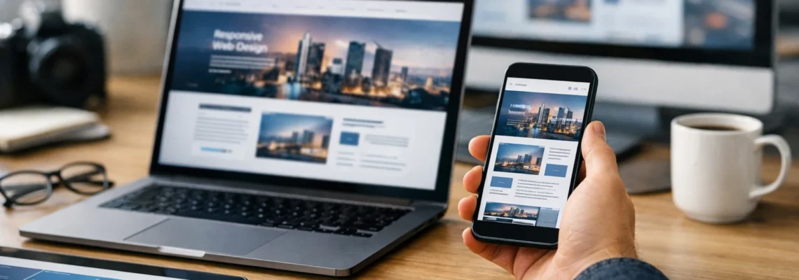 On a packed morning train, a shopper twists her phone sideways, and the homepage in front of her does something beautiful: a tight desktop grid relaxes into a clean single-column layout, the menu stays tap-friendly, and the buy button never disappears. That little moment is mobile and desktop responsive web design doing its job.